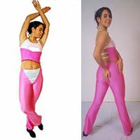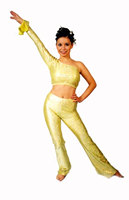 Francine Carnival 2 Piece Outfit. Cropped top with carnival frill cuffs. Bootleg flared Jazz Pants Hologram fabric. Allow up to 3 weeks delivery. Colours : Gold, Pink, Black, Silver, Purple Sizes : From 1 Price : Top From �21.00 Trousers from �38.99 |