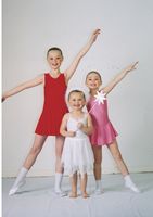 RAD (Grades I/II) cotton/elastane sleeveless leotard with matching belt Colours : pink, pale blue, white, navy or lavender Sizes :00 to 3A Price : From �8.99 |