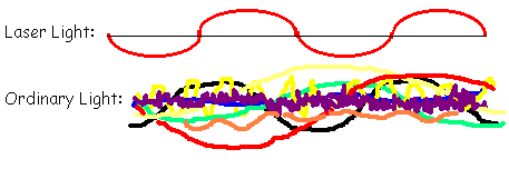 The reason lasers are so special and different from ordinary lights is due to three main things. Laser light contains only one color, or wavelength, where as ordinary light is a mixture of many wavelengths. A laser beam is said to be 'coherent' as its waves are identical. This means a laser beam could never be white as white is a mixture of many different wavelengths.