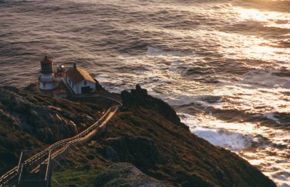 Point Reyes National Seashore is located in Marin County in Northern California. We camped in Samuel P. Taylor State Park nearby and spent our days over at the National Seashore. Although it rained most of the time we were there, we enjoyed the trip. The highlight of the trip for us was watching gray whales pass by the Point Reyes Lighthouse. We saw them spouting and once we saw a tail in the air. Also at Point Reyes we saw herds of elk, deer, a fox, and many birds.