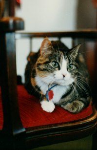 Tabby is Webby's sister and was my sister's cat until she moved out. She is a little chunky now. She is mostly pretty friendly but sometimes gets cranky with some people. She is a little slow. Her tail is somewhat shorter than it used to be thanks to an unfortunate collision with a metal cleated shoe some years ago.