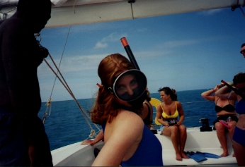 After getting over a bout of sunstroke, I decided I was ready for some boating and snorkling! The boat was small, with about 20 passengers and 4 crew. There was alcohol included on the boat: rum and beer. Most of the passengers weren't too into the rum, so one of the crewmen decided he would polish of the bottle. By the end of the cruise he was making everyone dance in this tiny space on the boat or he would threaten to throw you in th water. It was a blast!