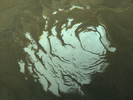 There is very clear evidence of erosion in many places on Mars including large floods and small river systems (right). At some time in the past there was clearly water on the surface There may have been large lakes or even oceans. But it seems that this occurred only briefly and very long ago; the age of the erosion channels is estimated at about nearly 4 billion years. (Valles Marineris was NOT created by running water. It was formed by the stretching and cracking of the crust associated with the creation of the Tharsis bulge.).