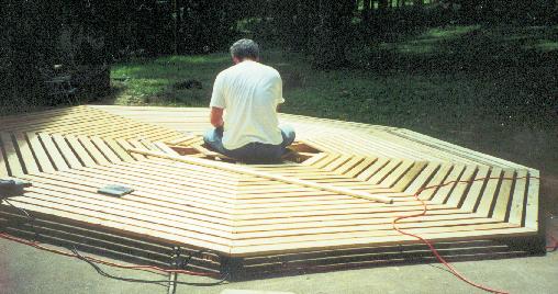 After the digging and setting, we laid out the "pre-deck." The deck pieces were placed and bolted together. So far, so good.