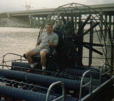 Notice the cheezy grin while he is posing on the airboat! As I always
