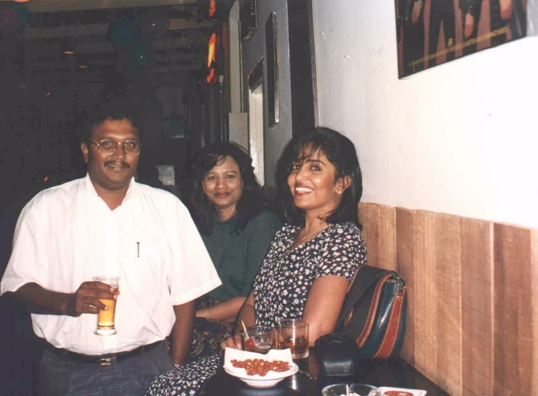 Qenching my thirst at a pub with friends Sheela and Gigi