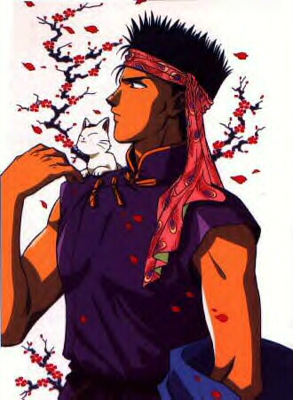 Mitsukake is kinda the strong, silent type. His history: his fiancee, Shoka, was possessed by a sickness demon and he had to kill her to free everyone from the sickness, so he hasn't exactly had it easy. But usually he isn't regarded as a very important character or many people's favorite...he's just kinda...there. Though I must say, he does impart some wise, kind words to Miaka that help clear her mind at a certain point, and to Chichiri as well...Anyway, his power is his ability to heal. Hope you enjoy the few links I could find about him!