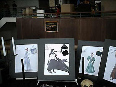 This is Adam DeMary's tech project, a set property for the play Dracula. He only got Honorable Mention for it with really pissed everybody off, especially Adam! Aaron's tech project was the torch we used in A Christmas Carol. Sadly he didn't place and we were really mad about that too! It's still a tight project though. This is some girl modeling her costum for the play Rashamon. She played the Medium and I thought the costume was pretty cool. The play was good too. This is Tommy Hartlib serenading some chick with his guitar, even though he already has a girlfriend. Just another college student goofing off for the camera. It's strange what people will do just have their picture taken... Costume sketches for the play Dracula. I don't know who drew them, nobody from our school, but I thought they were pretty cool. This is the upper balcony of the theater center at MU. It's called the Medea Balcony. |