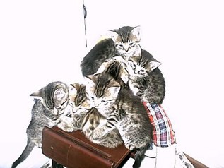 ![]() Six of our seven kittens: Antigone, Ismeme, Moby, Timmy Jr., Luna, and Tybalt