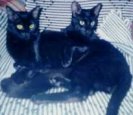 Os meu gatinhos s�o birmaneses tra�ados de Persa. Nasceram no dia 6 de abril de 1998 em minha casa. S�o pretos. A Simba tem o pelo comprido (saiu ao pai que � persa) e o Billy tem o pelo curto (saiu � m�e que � birmanesa). Ambos s�o muito bonitos. A Simba � muito independente e s� brinca quando tem vontade, mas o Billy � muito afectuoso e est� sempre pronto para brincar e receber carinhos. S�o os dois muito gulosos. Comem a comida deles mas gostam muito de 'petiscar' a minha comida e guloseimas. Gostam de iogurte, leite creme, gelado,arroz doce e at� de Korn Flakes!!! S�o demais !!! ------------------------------------------------ My little cats are birmanian mix with persian. They were born in April the 6th in my house.They are black. They were born in Abril the 6th | ||||||||||||||||