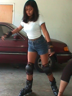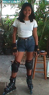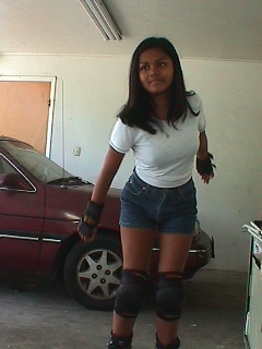 These are pcitures of my friend Marisol. In these pictures, it shows her first time trying out rollerblades at my house.