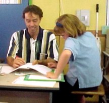 Here Samuel is doing E-Cards. First finding an activity card and later finding the right answer card. |