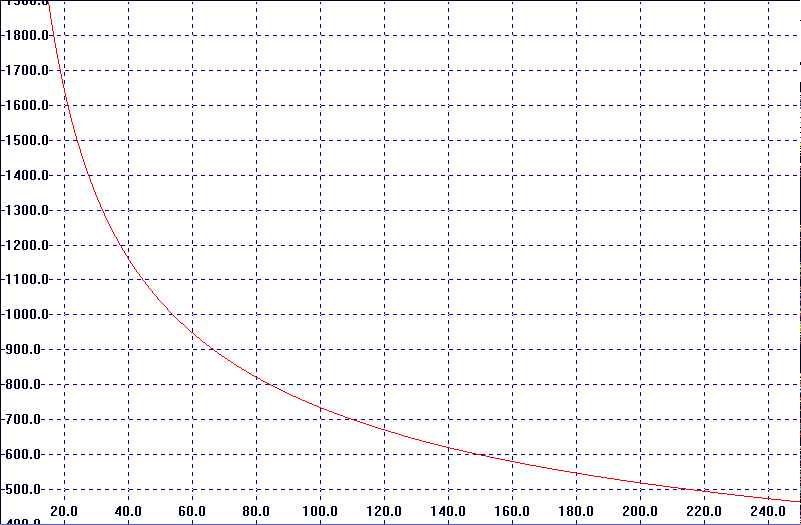 en kijk dan op de X-as welke waarde (in pF) er mee overeen komt. Trek daar