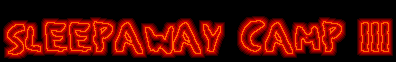 This flick catches Angela off guard. I mean, she says that she had a crush on Tony. A CRUSH??? I was quite sure that Angela was asexual (she didn't care for guys or girls) she just killed them. Oh well, this is my second favorite movie of all three. It is back to the basics for Angela. By back to the basics I mean, look at the similarites between Sleepaway Camp and Sleepaway Camp 3. It is possible to match up everyone in the 3rd movie with a person of the same personality/dispostion with that of the first movie. I was kinda dissapointed in the fact that Angela sprained her ankle. It almost got her killed. I said Almost.