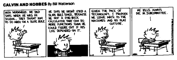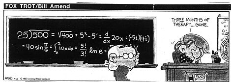 Okay, the point of this entry is that I just realized how different college calculus is from high school calculus. Aside from the fact that I can't remember what I learned in high school calculus, the two types of classes are dramatically different. High school calculus seems to be focused on calculations like no end, while college calculus is more on freehand work and using coveted theorems like the Fundamental Theorem of Calulus, or the Mean Value Theorem. Calculators aren't even allowed in Berkeley math classes.