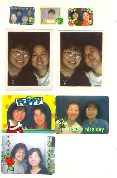 taking a pose, trying out the machine; Me and Shu at Japan Center,