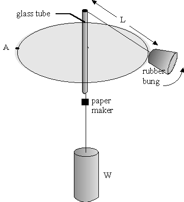 (c) To study a circular motion, a small rubber bung of mass m is attached to one end of a piece of string passing through a thin glass tube, which has a weight W hanging at its other end The rubber bung is set into a horizontal circular motion by a student holding the glass tube.