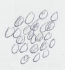 These cells appeared as many small dots moving slowly. They were mostly blue due to the dye that was added, but some appeared as aqua or light green in varying shades. Their shape was generally rounded, but not bloated.