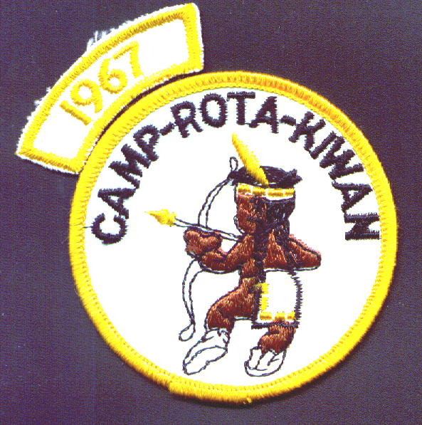 The basic pattern for these two decades was rather simple. One design was used, that of the "naked butt Indian." Each decade featured two different color schemes, and each year that a scout attended camp he received a strip with that year printed on it, and eventually the years all added up to a completed border around the patch. These year strips are very difficult to come by and verify because this was a popular trend across the nation and many such strips look like those printed for Rota-Kiwan. The only example I have is a 1967 strip, which is shown below.