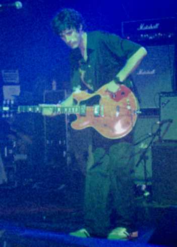 The first thing I noticed were his eyes - deep and glassy, reflecting his perceptive, peaceful nature. My friend and I were greeted with a grin which radiated warmth from every feature of his face. This was Gruff Rhys, lead singer of the Super Furry Animals, sitting right here in front of us and yet with microphone, guitar and strobe lights removed he was just like you or me. Daf then came to join us (which was a surprise as he usually sleeps through most of his interviews!) and we all settled round on sofas, chatting generally about Welsh music before commencing the interview. It�s difficult to know where to begin as Gruff always seems to go on a tangent so you can never rely on one question leading on to your next. Firstly, we talked about their new record label, �Placid Casuals�, and why they decided to release Psycho VII�s new song, to which Gruff replied �we heard the song and thought that other people had to hear it� which seemed a sufficient enough reason for the Super Furries to start their own label! They will apparently be able to release their own singles on this label too (although only in Welsh as this was the condition set by Creation) and intend to keep their releases to vinyl. Cian also has a band called the �Acid Casuals� which, according to Gruff and Daf, will take him ages to get together. However, he seems very determined, and was busily DJing when we saw him backstage after the gig: surely with such determination he would be able to make a breakthrough, especially as his live instrumental after �Mountain People� always goes down so well with the crowds. He has definitely proven his ability on the next EP �Ice Hockey Hair�, which is a great deal more electronic and experimental sounding than �Radiator�. According to Gruff, �it was a very different sound to anything that was on the last album so even though we recorded it at the same time, we couldn�t really put it on the end�. The EP features a track �Smokin�� before the title track, but as Gruff says, �every song on the EP is of equal merit�. The songs on the EP contain samples, as do many more of their tracks (e.g. Steely Dan on �The Man Don�t Give A Fuck�), which according to Gruff are an exciting way of �collaborating with the dead� and bringing their music back to life, which can be as good as working with living celebrities. Musically, ideas never seem to stop pouring from Gruff�s head. So how does he make music which is so varied and which appeals to everyone? His secret is to be constantly on the lookout for influences from other people and everything around him. He can be inspired to write a song just by visiting service stations or riding his bike. A forthcoming song called �Nightvision� was inspired after recording one night in a field in Wales, wearing goggles which enable you to see in the dark. Hmmmmmm, yes. The giant inflatables (bears, thought bubbles, lightbulbs, etc.)were also an effective idea of the band�s which have attracted a great deal of attention at many venues and their open-air �festival� gigs last summer. The band got this idea from a Japanese festival and decided to adapt the idea for themselves, giving the fans something different to look at and finding an eye-catching alternative to the festival tank. The Furries were meant to be playing their favourite festival, Glastonbury, this year but Gruff explained that �they put us down to play this year without even telling us so we had to say that we couldn�t do it�, a bemused expression crossing his face. However, the Furries are renowned for being party animals and are always up for staging special events - so what have they got planned for the millennium? Daf seemed keen on the idea of climbing the Millennium Dome, but Gruff thought of staging a special show with many bands in the open-air but then reconsidered �because the snow might ruin the equipment�! Their final decision was inconclusive - they wanted to do something on a major scale with the band, but didn�t want to spend it away from their friends either. You�d have thought that Gruff, Daf, Bunf, Cian and Guto would have had enough of each other by now, but apparently they never really argue and don�t get annoyed by any of each other�s habits (�we don�t have bad habits - we�re superhuman!!�). They were adamant that the human race thrives on its differences in any case and if nobody had their own habits or faults, life would not be worth living as everyone would be the same. At this profound stage of the conversation, Cian and Bunf burst in, being their usual loud, boisterous selves when together, briefly stopping the interview. At this point, I decided to lighten the conversation a little and ask whether anyone remembered the Welsh kids programme, �Ffalabalam�, which resulted in us all singing the rather crazy theme tune, a capella, then retreating into fits of laughter. We ended with the question of what they would do if they were Prime Minister for a day. Daf decided that he would �swear a lot and throw a massive party at Chequers - "�cause that�s what they do on Sundays isn�t it??� and Gruff concluded, in his typical manner, that it would depend on what day it was and then continued waffling on about not buying West Indian Bananas... God knows what he was on about...!!! We decided to finish the interview there and it was soon time to leave. We found that we had been locked in the Town Hall and Gruff generously tried to batter a massive fire door down for us, without much success. We eventually made it out onto the street, tired and hungry after a long and hard day. All in all, it was a very interesting and satisfying way of ending a trip to Middlesbrough to hear this amazing band play. | |||||||||||||||||||||||