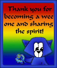 Wow. I have been chosen as Wee One of the Week also!! This is toooo cool! Here is what Lady Katrina said about me: "Wee One Cookies has so much spirit!! She's relatively new as a Wee One, but her spirit already stands out brightly, and she's a pleasure to talk to =) I'm amazed at how quickly she's gotten started, and how involved she's gotten even in the short time she's been with us! *S*"