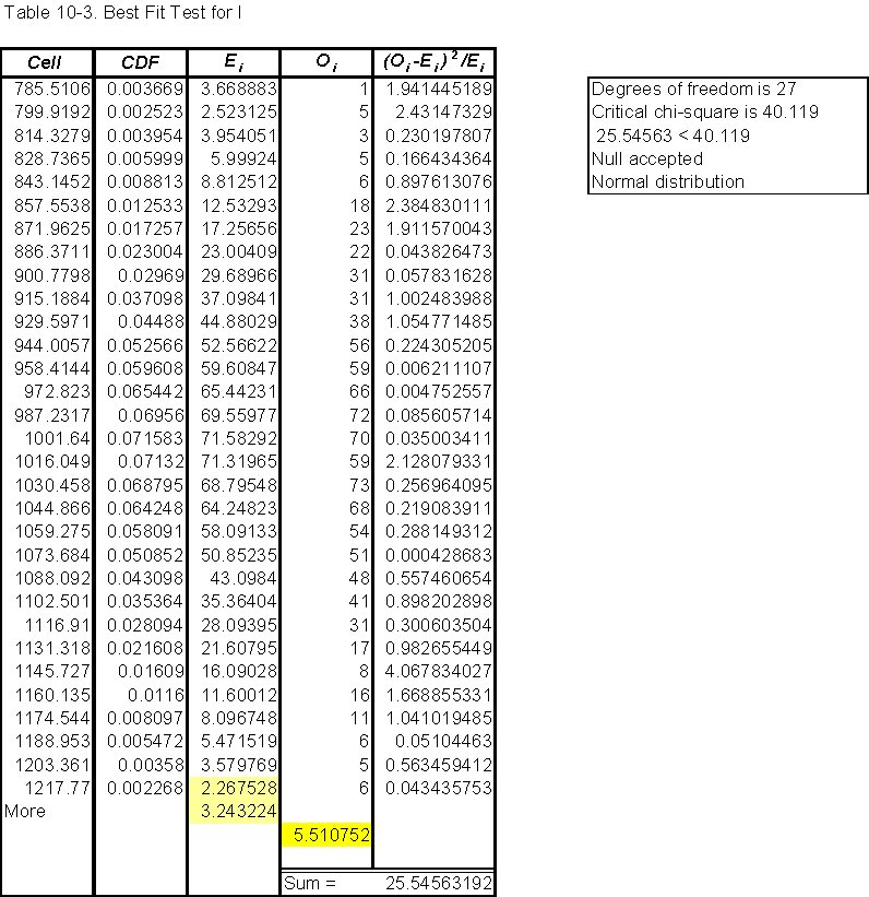 Goodness of fit of I (Table 10-3)