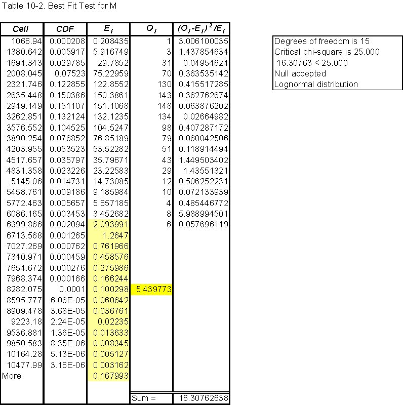 Goodness of fit of M (Table 10-2)