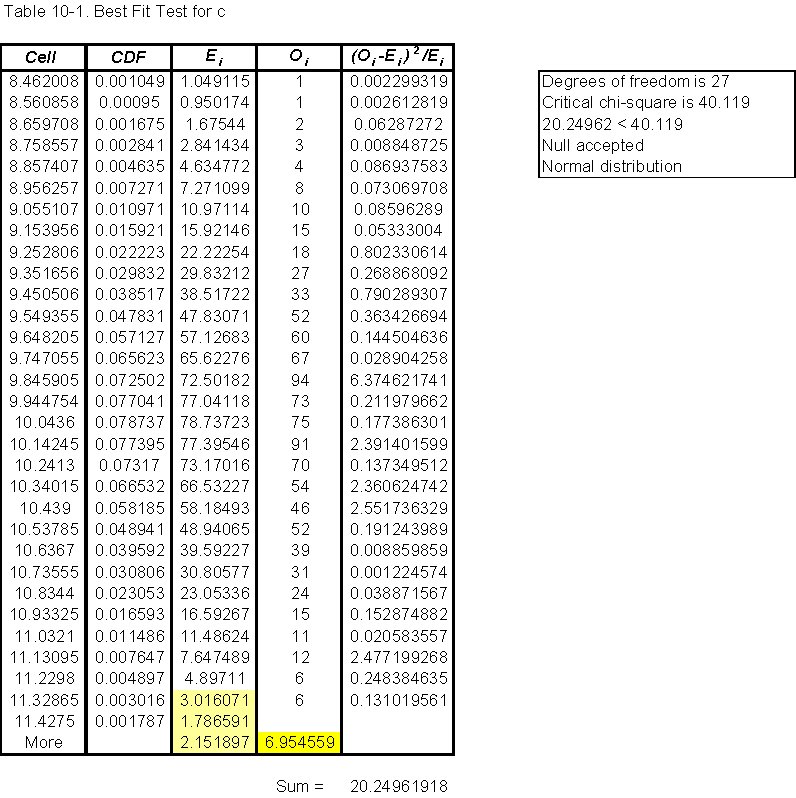 Goodness of fit of c (Table 10-1)
