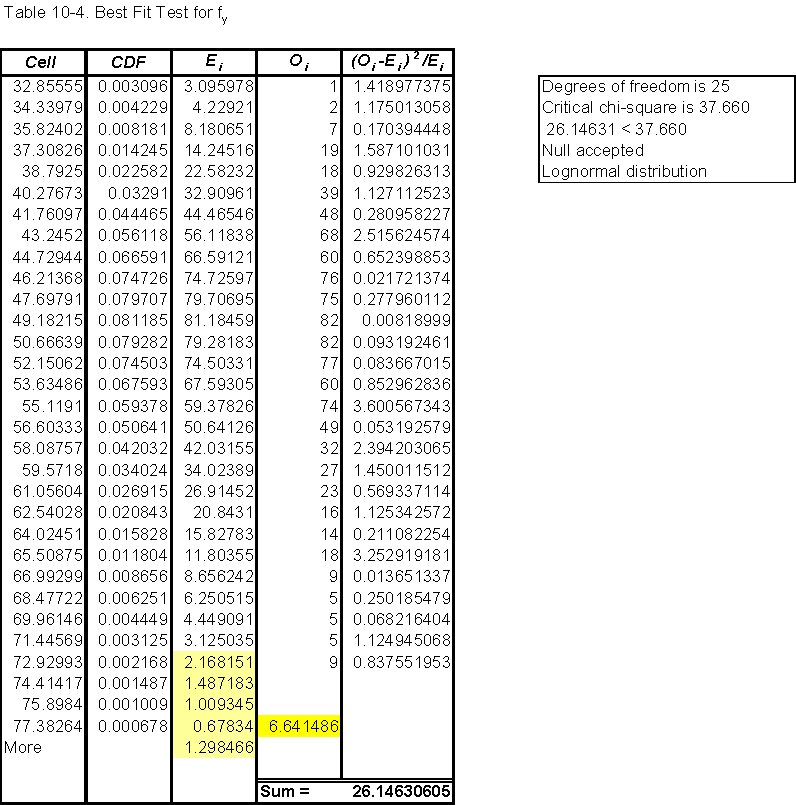 Goodness of fit of fy (Table 10-4)