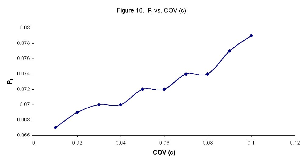 Figure 10 shows the effect of varying the coefficient of variation of c or COV(c), on probability of failure, Pf. When varying the coefficient of variation for c, COV(c), we observe a positive, almost linear relationship.