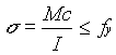 , where s = the calculated stress, c = the distance from the neutral axis to the extreme fibers, M = the applied moment on a section due to external loads, I = the centroidal moment of inertia of the cross section, and fy = the yield stress. Steel beams placed under a stress, s, greater than fy will fail.