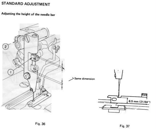 To adjust loosen screw (1) (Fig 36) in the needle bar clamp, place