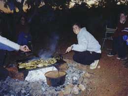 | Here is a friend I made called Krissey when we were on a trip of Western Australia. She was absolutley hilarious and we had a mad time camping out along the way. We cooked all our food ourselves and on the fire you can see the traditional Aussie damper bread cooking in the pot. |