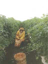 | It was back to fruit picking to get more cash to continue. This is tomato picking in Childers in Queensland. It was usually very sunny but when it did rain it was out with the rain macks and continue picking. As you can see I was very at one with the earth! |