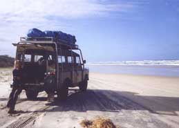 | This is my Dutch friend Femke beside our jeep on Fraser Island, still on the East Coast. This was a trip a group of us did from the youth hostel in Bundaberg where we were packing sweetcorn and peppers. We were so fed up of the awful work and small town, we were dying for this trip. Fraser Island is the largest sand island in the world and Katie who was driving managed to tip the jeep off a dune with all of us inside! Luckily, no one was harmed but it'll defiantly be a long time before I get into a old jeep again. |