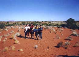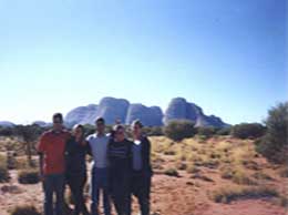| This is the group again in front of the Olgas which are what I would call the neighbours of Ayers Rock.(That's my wonderful Geography showing!) |