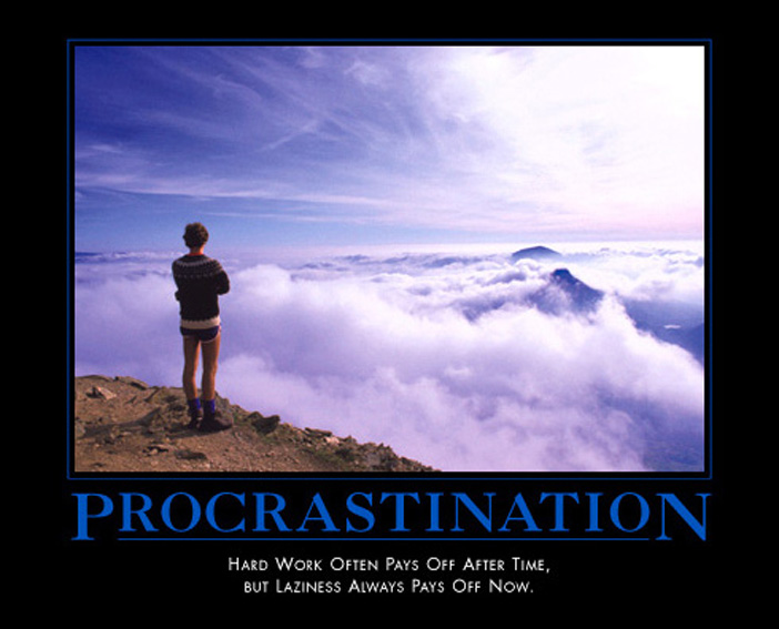 Procrastination is like Masterbation. It may feel good when you do it, but in the end you've only Fucked yourself.