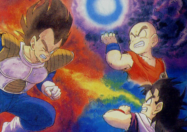 lugar. Gohan llama la atención de Vegeta mientras Krillin intenta hacer una Kienzan al