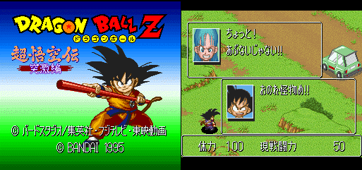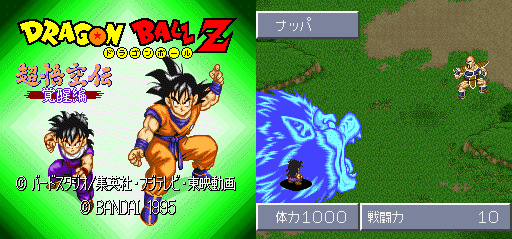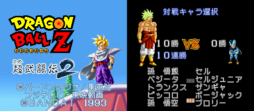 Este es un juego de pelea para el SNES, pero en algunas páginas puedes conseguirlos y jugarlos gracias a un emulador, te aconsejaría el Zsnes700, solamente le configuaras el sonido. Bueno como te duje antes este juego es de pelea, basado en el torneo de Cell y la película #9 (Bojack). Este juego me parece el mejor de todos los juegos de DBZ, gracias a sus gráficas y poderes. este juego tiene 3 opciones, Story mode, Fight character y tournament. El modo historia es el que te cuenta la historia desde la saga de Cell hasta la película 9, mientras participas en las más importantes batallas, en esta opción solo puedes escoger a 4 peleadores, Gohan, Piccolo, Vegeta y Trunks, y lo más chevere es que tu puedes cambiar el rumbo de la historia.