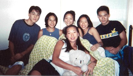 Who the hell are we? Just a bunch of people who met during Columbia University's Summer Program for High School Students '99. Some of us are roommates, schoolmates, classmates, but we're all friends and we all love the city. The program basically has a bunch of high schoolers on their own in New York City, staying in Columbia's crappy freshman dorms for a month. We all take classes (kind of), roam the city, avoid cockroaches, play excessive N64, and meet cool people. This group especially had FUN doing really strange stuffs that can be discovered by searching this page. On your way out please sign the guestbook (if your picture's on the page, then you HAVE to sign the guestbook! No option!) and have fun!