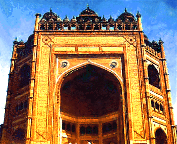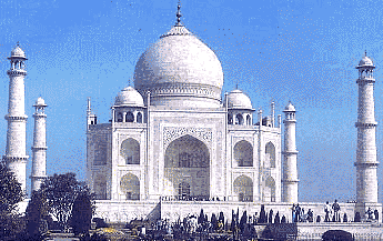 Taj Mahal, Agra- An extravagant marble monument of love, built by Shahjahan in 1653 as a memorial to his queen Mumtaz Mahal who died giving birth to their 14th child. White marble and red sandstone, silver and gold, carenelian and jasper, moonstone and jade, lapiz lazuli and coral were fashioned by 20, 000 skilled workers to make the emperor's dream a reality. It took 22 years to complete - a poignant symbol of eternal love where Shahjahan too lies buried, reunited at last with his beloved Mumtaz. |