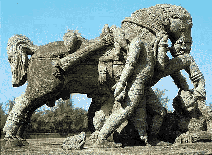 the Orissan builders of Konark. This carving of rearing horse trampling down men is evidence of