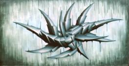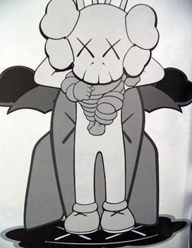 This is by a graffic artist who goes under the writer name kaws1, he has really diversified and gone into all manner of art even into plastic injection molding of his own line of toys…