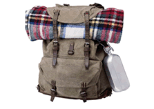 Contoured padded shoulder straps and webbing waist belt distribute the