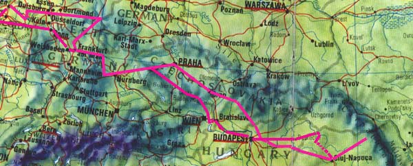 August 7th: We were woken at about 6 a.m. by the motor of the truck next to us in the street which the driver kept running until we were properly awake :) But it was about 10 a.m. by the time we were about to leave and I went into a shop (here many shops were a small room infront of a home with a few things on the shelf and this shop was like that) but they were thrown into total confusion when I tried to pay for some biscuits with a 100,000 lei note (about 3 Euros). At that moment, Dan (who later was one of the assistants who helped me make my sculpture) walked over and said the word "sculpture symposium". I said Maxim and he smiled and indicated that we should follow him in his car. |