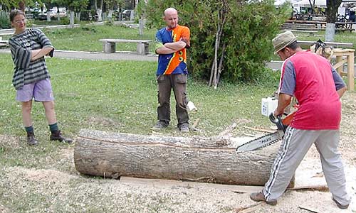 Of course, the one who really did the hard work was the man with the chainsaw. Photos: Leidi Haaijer. |