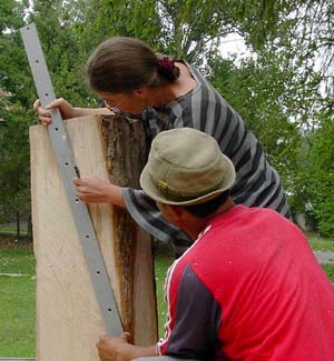 But it was the assistants who were working so hard. Here on the left is Dan after sharping the blades and on the right is one of the artists (M) watching while another assistant (in the photo on the right) work on his sculpture.