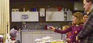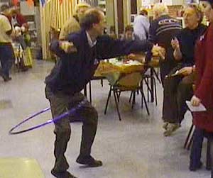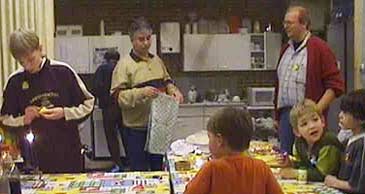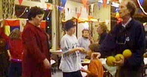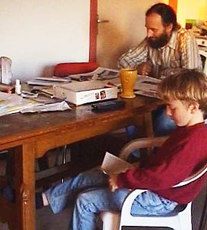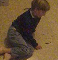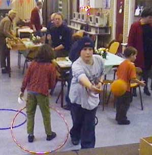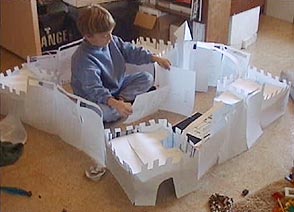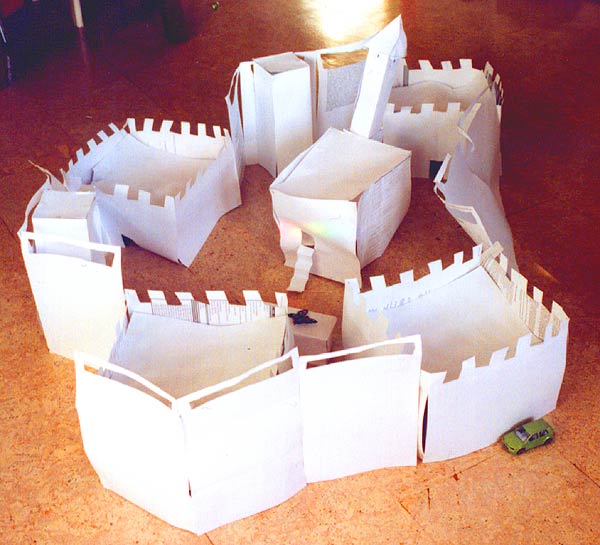 Feb 17th: This morning I woke to find Tama busy making a church out of paper for his castle. Later being inspired by a movie about baseball, we three played this in the hall and then later Tama found two children to play baseball with on the grounds below our flat. |