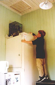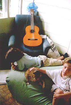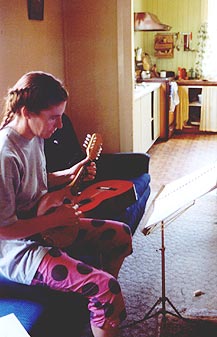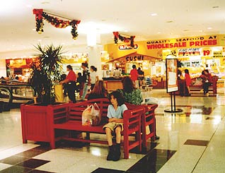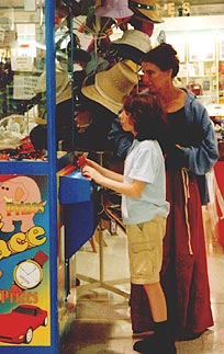 Toroa watching the shopping in St Luke's shopping centre. In the afternoon Jane took us the the two dollar shop and here she is helping Toroa with a game. We bought lots of canned cream corn! |