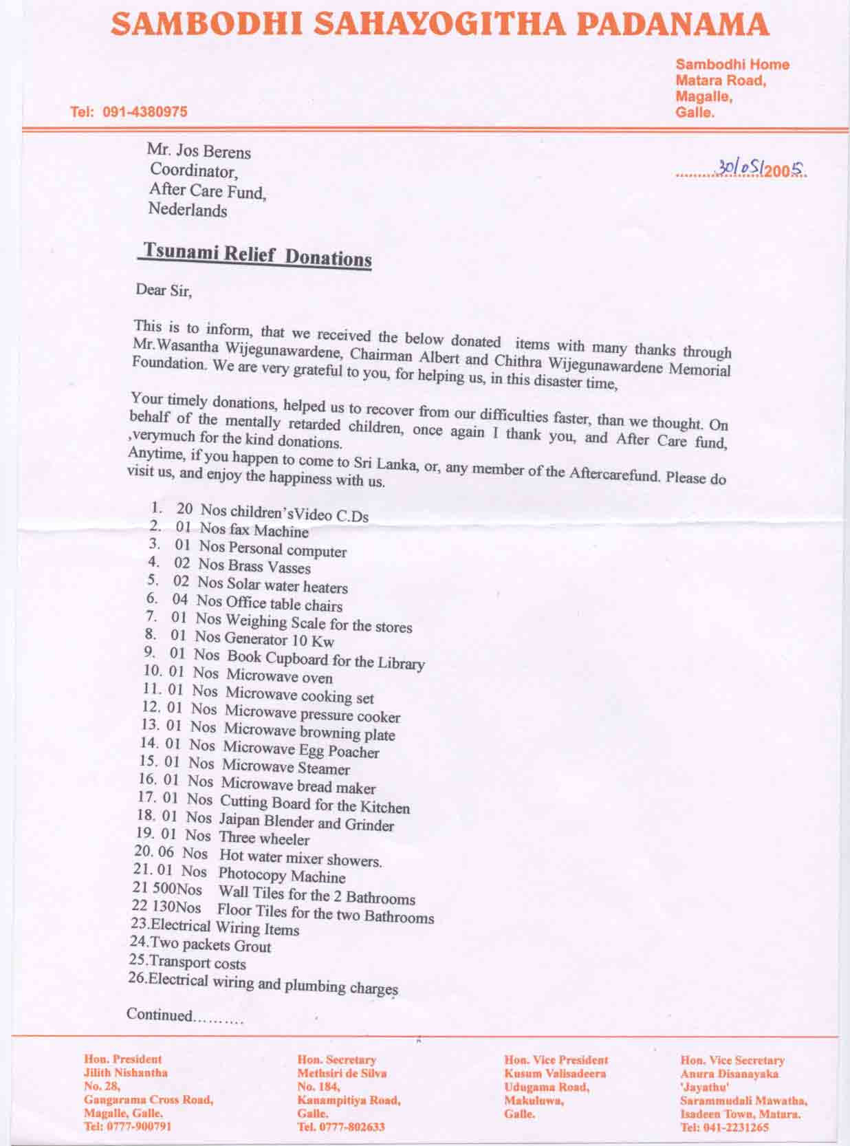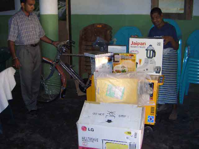 Most of the repairs Electrical as well as masonery was done by Sunimal who is one person we are helping, because he also is a victim of tsunami and his house was damaged.And he is a also a dissabled technician working in Unawatuna Beach resort.So I asked him to do this as acontract and earn little money to build his house other than the donation we gave..